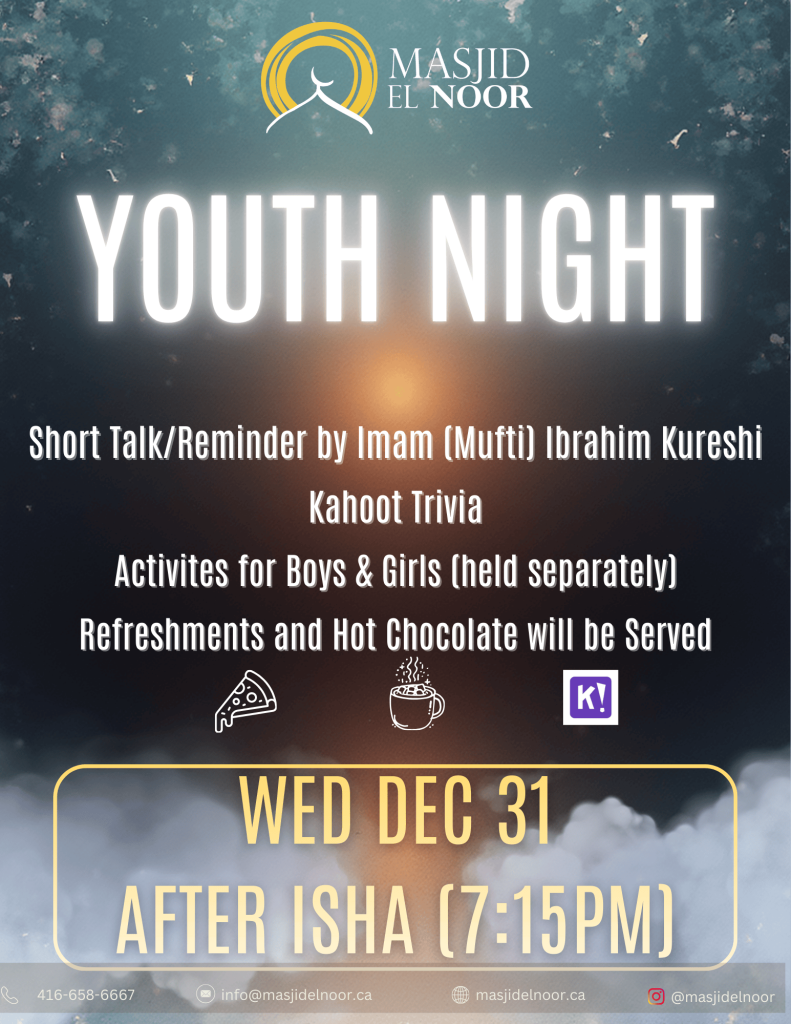 Evening Maktaab (Madrasah) Monday to Friday (5:15-7:15PM)