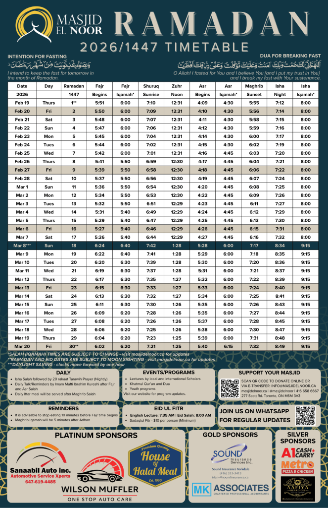 We have 1 Jummah Prayer only Parking is available on both sides on Scott Rd (south of Cameron Ave) to Rogers Rd- JUMMAH ONLY Please do not block any fire hydrants, cross walks or driveways